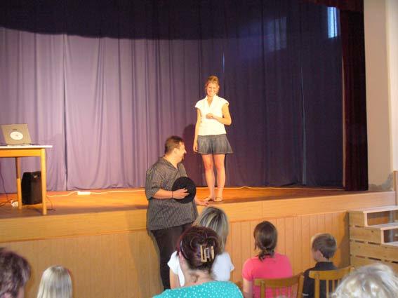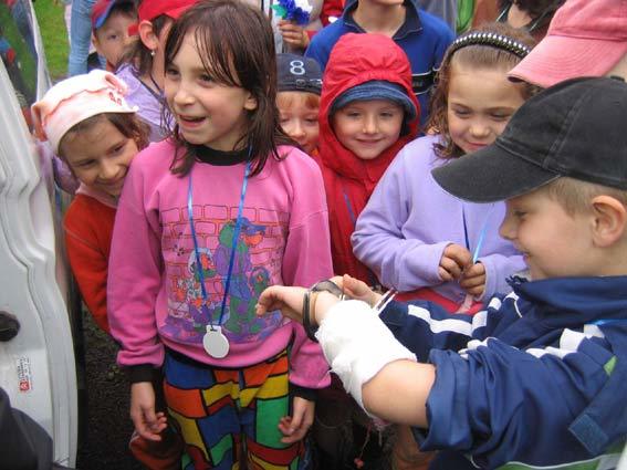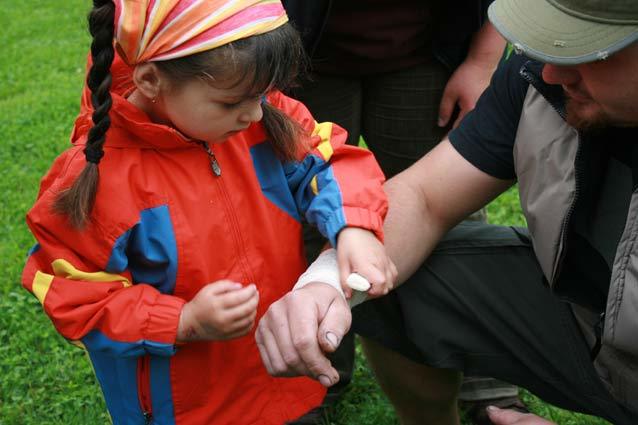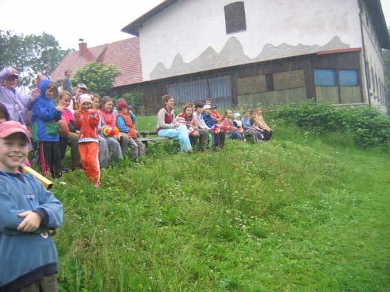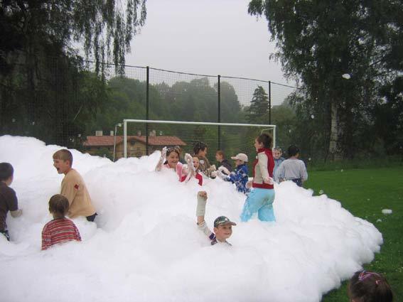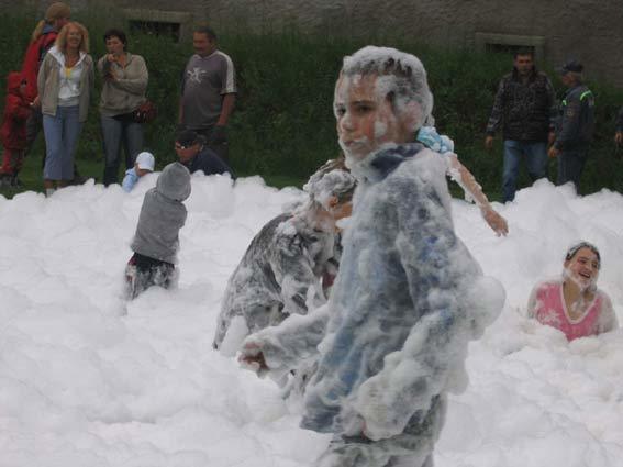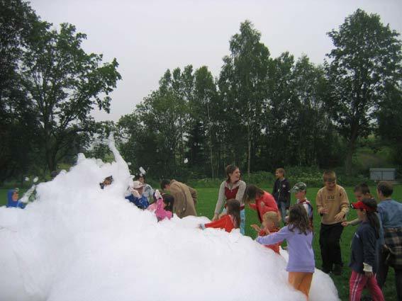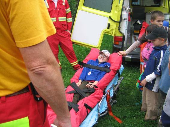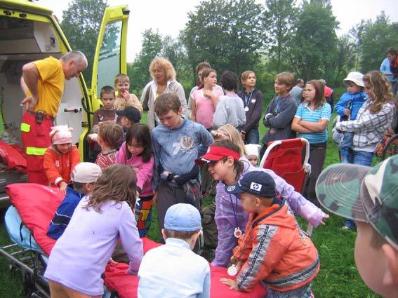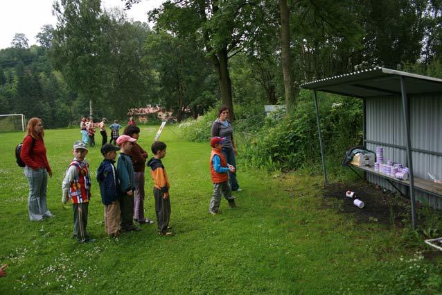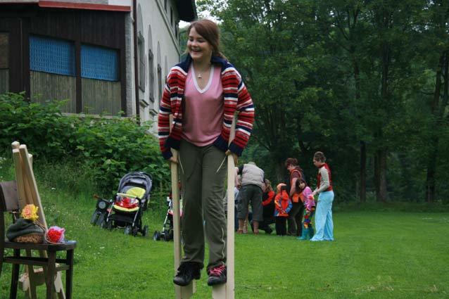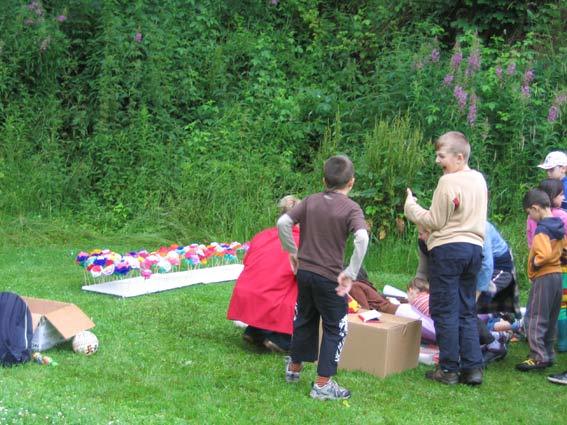 Začali jsme soutěžemi. Nejprve si každý vystřelil růži pro štěstí, pak byla vycházka na chůdách. Také jsme poskytovali první pomoc, strefovali se zdařile vyvedenému šaškovi do úst a rozmetali pyramidu plechovek.