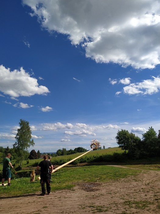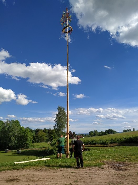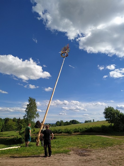 Nikdo naši krásnou májku neukradl, tak jsme se mohli ve čtvrtek 2.6. sejít na hřišti a pokácet ji. Chlapi se ujali akce a hned na první pokus májka padla k zemi ???? Ostatní jsme se pustili do odstrojení pentlí. Po zdařilém pokácení a odstrojení májky jsme si opekli špekáčky, chvíli poseděli a popovídali si. Příští rok se budeme opět těšit.
