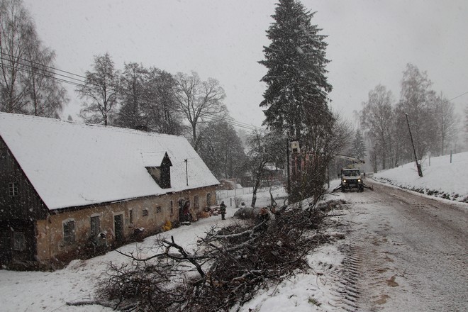 Špatně udržovaný, ale zato mohutný dub letní, musil po povolení nový majitel čp. 201 odstranit, aby mu nevznikaly další škody na domě či přívodu elektrické energie. Specializovaná firma na kácení ve ztížených podmínkách za asistence pracovníků ČEZ - a strom leží. Ale nebylo to jednoduché!