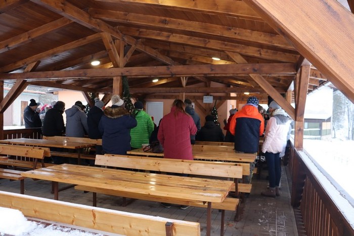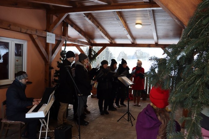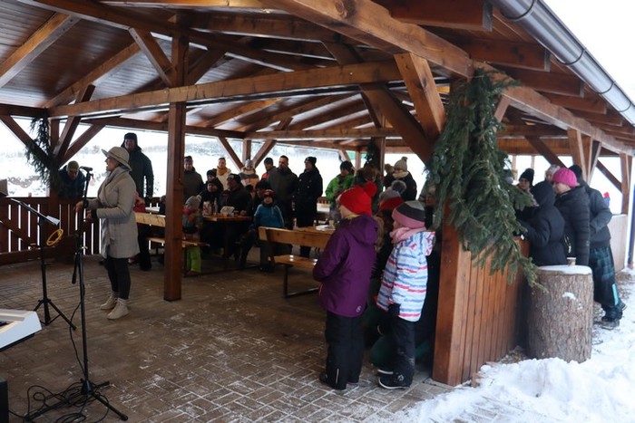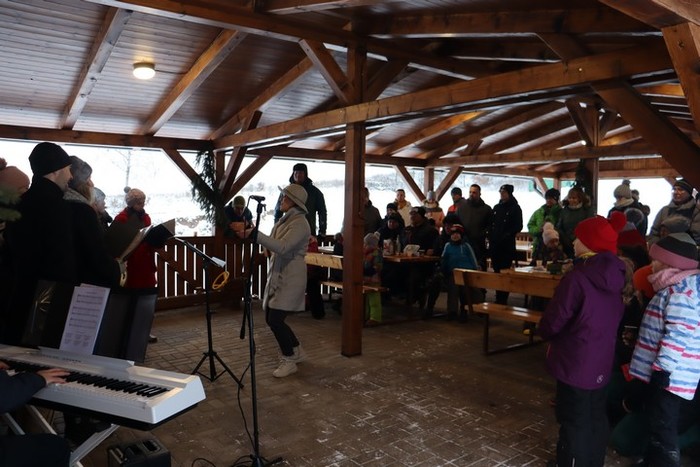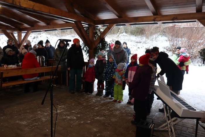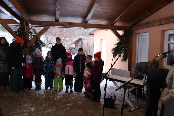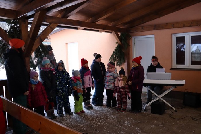 V neděli 18. 12., kdy jsme na věnci zapálili již čtvrtou svíčku, jsme se na malou chvíli setkali na hřišti na adventním zastavení. Jako první nás na vánoční čas naladily děti z MŠ se svými vánočními básničkami a písničkami. Poté nám zazpívali vánoční koledy české, ale i z ciziny pěvecký sbor CLARI CANTUS. Kulturní komise měla pro návštěvníky nachystaný horký čaj a svařák a návštěvníci na oplátku přinesli trošku cukroví na ochutnání. Počasí bylo sice velmi mrazivé, ale byli jsme rádi, že jsme se mohli na chvíli zastavit a naladit se na vánoční čas.