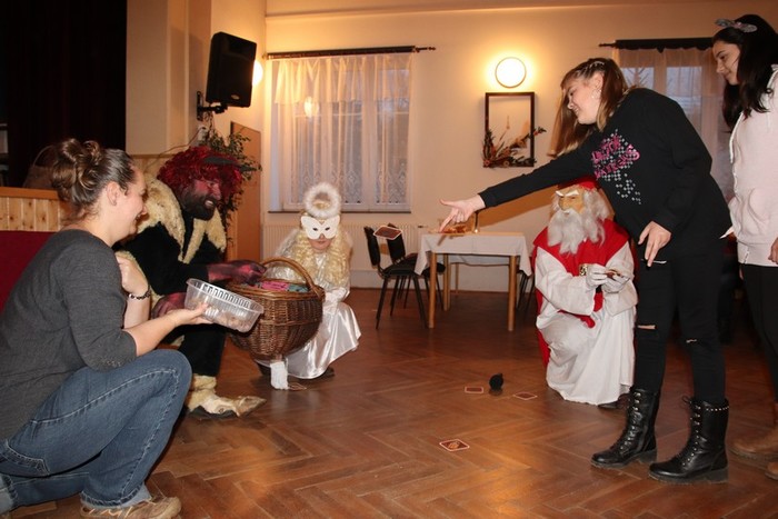 Devátého prosince pozval svatý Mikuláš děti do kulturního domu na mikulášskou nadílku. A byla nejen nadílka a pohoštění, ale i soutěže, zábava, tanec a rozsvícení vánočního stromku před kulturním domem. Miluláš, anděl i čert byli velice roztomilí a příjemní hostitelé. Děti si celé odpoledne opravdu užily a ani nechtěly domů.