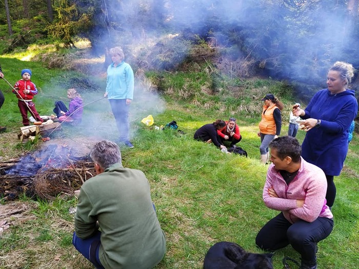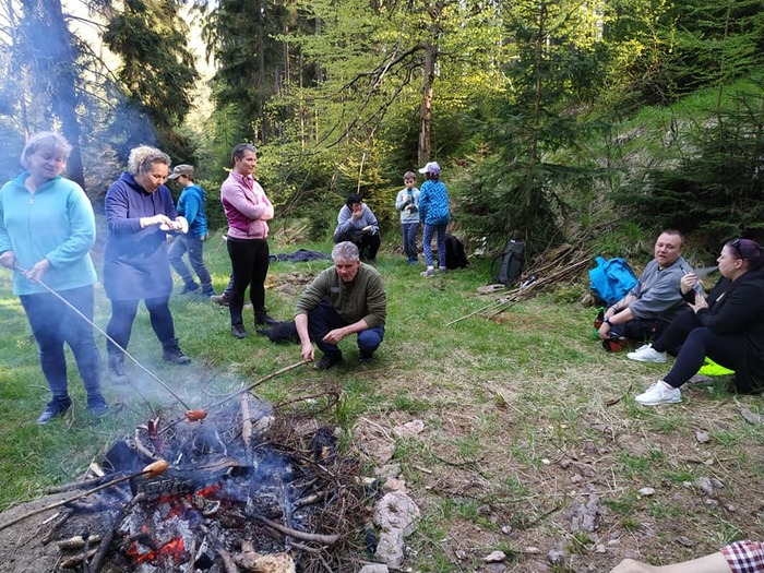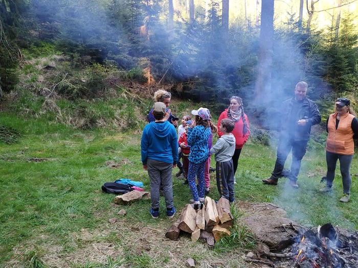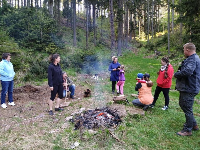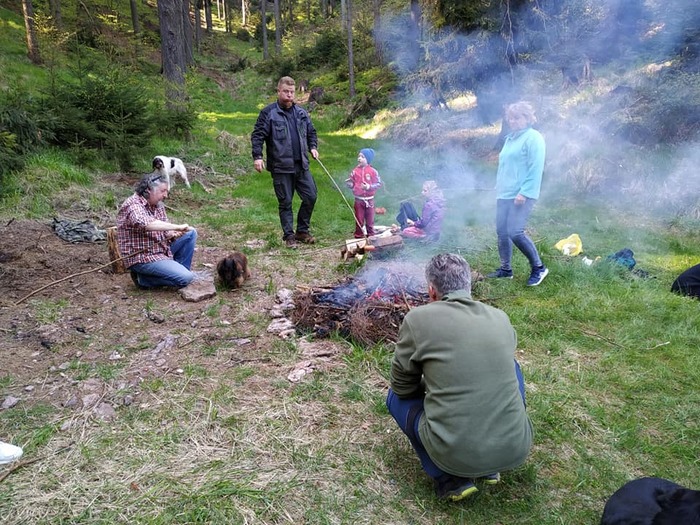 Dnes 9.5. byla na programu již tradiční odpolední procházka, kdy jsme vyrazili odemknout po dlouhé zimě naši studánku. Sešlo se nás 23 lidí a 3 psi. Procházka jarním lesem se sluníčkem v patách byla moc příjemná. Děti studánku vyčistily, odemkly velkým klíčem a krásnou básničkou o studánce. Anička K. napsala za nás všechny vzkaz, že jsme ani letos na studánku nezapomněli a přišli jsme ji odemknout. O kousek výš jsme si opekli špekáčky, popovídali si a užívali si voňavého jarního vzduchu. Pro děti byl opět nachystaný schovaný sladký poklad. Uhasili jsme oheň a vydali se ke svým domovům. Pojďte příště s námi, procházka naší přírodou je nabíjející ![]()