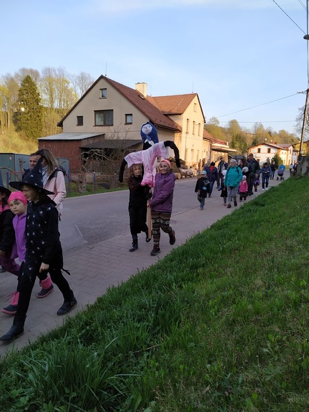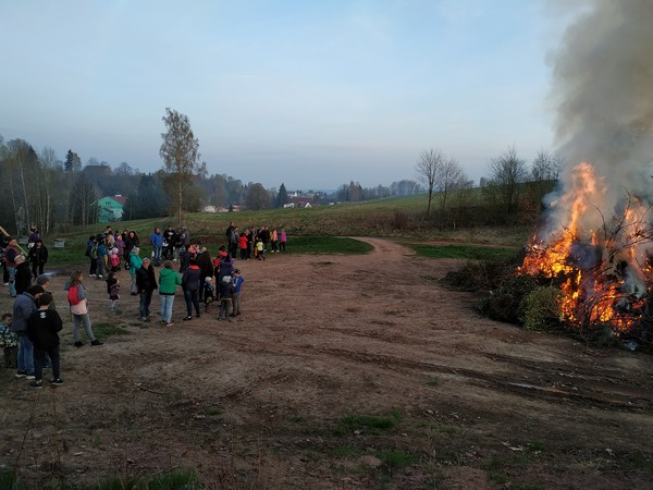 Po dvou letech jsme se sešli v pravý datum a to v sobotu 30. dubna na pálení čarodějnic. Malé čarodějky a čarodějové měli slet na parkovišti u obecního úřadu. Vyfotili se ve skupince s čarodějnicemi, jednu ženy vyrobily při stavění májky a druhou vyrobily děti v mateřské škole. Po zvěčnění na fotografii a rozdání sladké odměny za krásné masky, jsme vyrazili v průvodu za fotbalové hřiště, kde nás čekala veliká kupa roští ke spálení. Pro děti byly na hřišti připravené soutěže, aby jim utekl čas, než jsme mohli čarodějnice upálit. Po splnění úkolů jsme se všichni přesunuli k ohni a s napětím jsme sledovali, kdy naše čarodějnice shoří. Holky dlouho odolávaly plamenům, ale nakonec je pohltily. Celý večer nám k tanci a poslechu hrála kapela Doteky. Tímto jim moc děkujeme za zpestření večera a budeme se těšit na další společenskou akci.