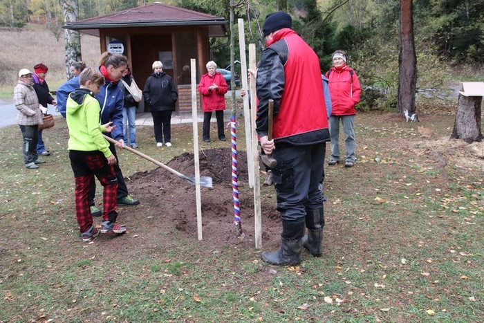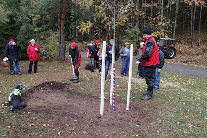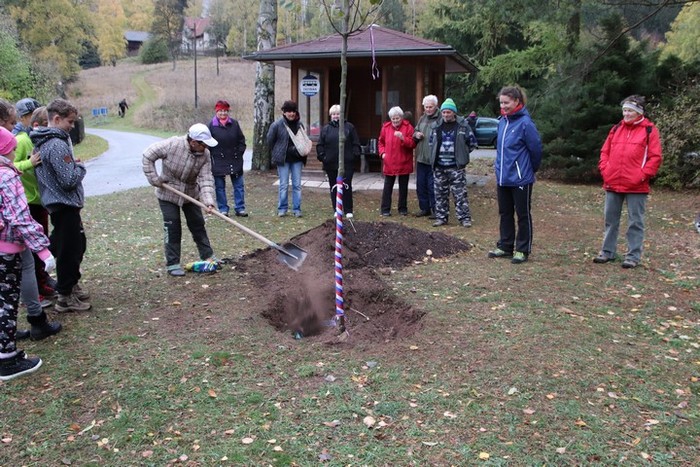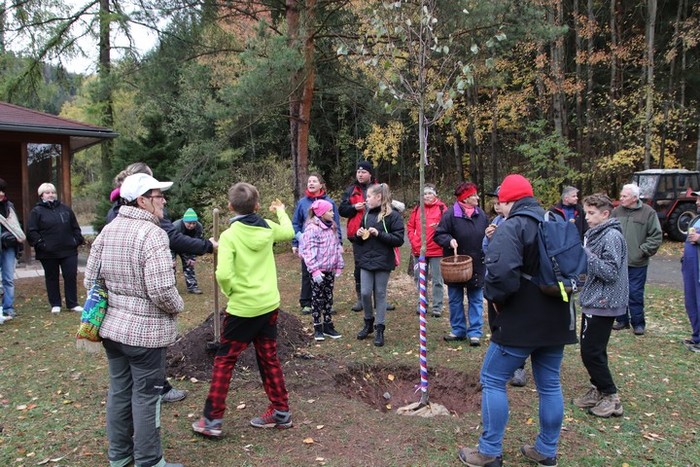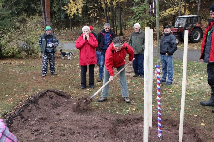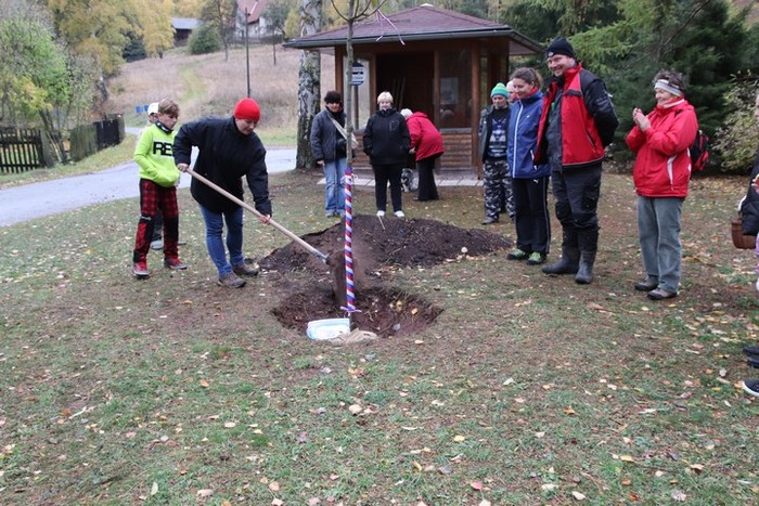 Ve čtvrtek 25.října 2018, v mírně deštivém počasí jsme spolu s dětmi vyšli k místu, kde byla připravena lípa svobody ke stoletému výročí vytvoření ČSR. Cesta nebyla snadná, děti nacházely stanoviště, kde byly ukryty obálky s otázkami, spojené s výročím republiky i s naší obcí. Postupně a dobře plnily jednotlivé úkoly, správně odpovídaly na otázky až jsme došli na otočku pod hájenkou, kde na nás čekali další účastníci slavnostního zasazení lípy ( lípa srdčitá) a též občerstvení. Děti lípu ozdobily trikolorou a vložily ke kořenům pamětní listiny, které připravily v Heřmánku. Pak už každý účastník vzal do ruky lopatu a pomáhal lípu zasadit. Ještě tři kůly a lípa je usazena. Přejeme lípě, republice, sobě a naší obci mnoho dobrého v dalších letech.