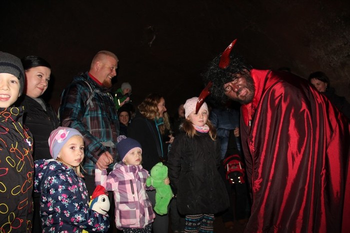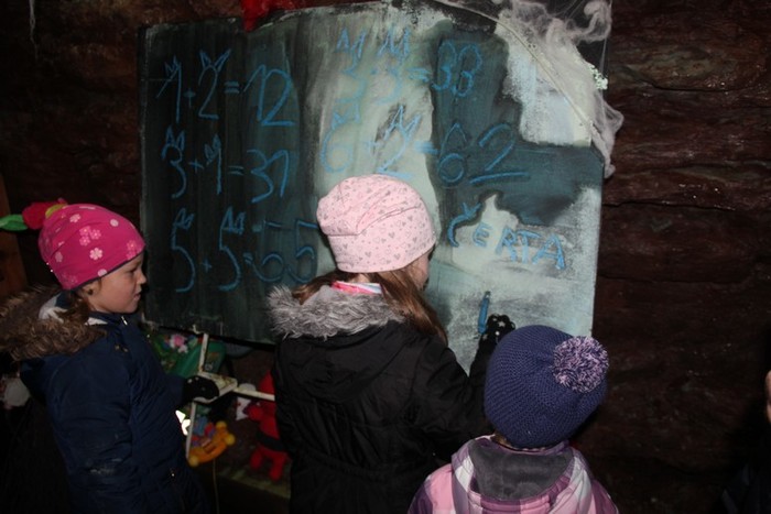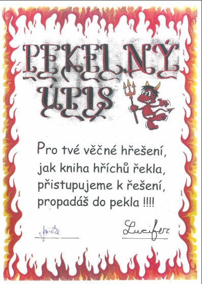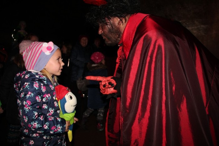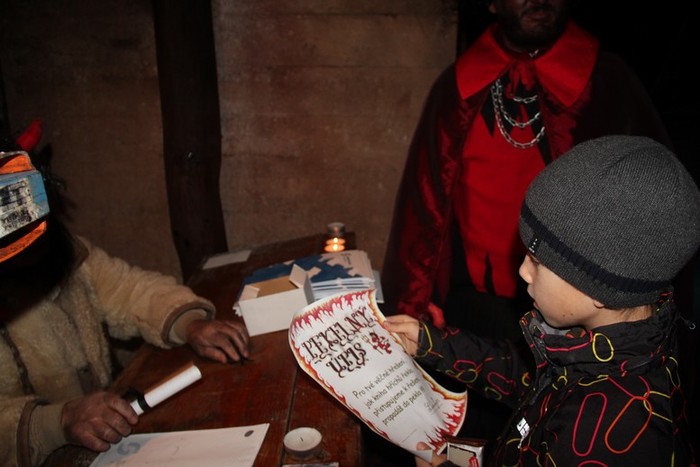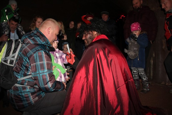 V sobotu ráno 2.11. 2019 jsme vyrazili autobusem na výlet do Pekla, které se nachází v Jívce v dole Bohumír. Cesta byla veselá a všichni byli natěšení a zvědaví, co je čeká. Jelikož jsme byla velká skupina, byli jsme rozděleni na dvě party, které se šli na peklo podívat. Druhá skupinka si zpříjemnila čekání v připraveném stanu, kde si děti mohly zatlouct pekelné hřebíky, vyšít si obrázek pekelnou nití, nebo si přišít pekelný knoflík. Ve stanu bylo přichystané i občerstvení. Čaj nebo svařák na zahřátí a párek v rohlíku na zahnání pekelného hladu. Nastal čas na prohlídku, postavili jsme se před vchod do dolu a s pomocí čertice jsme si zavolali čert Barnabáše, který nám dělal průvodce až k samému pánu pekel Luciferovi. Nejprve jsme museli vzbudit vrátného čerta, aby nám otevřel Pekelnou bránu. První zastávka byla v Pekelné nemocnici, kde čertice doktorka dětem změřila chlupoměrem a blechoměrem, jestli mají dost hustou srst a kolik mají blech :-) Na obrázcích jim zkontrolovala zrak a za odměnu dostaly balíček s náplastí, aby si zalepily pusy a nevzbudily Lucifera. Další zastávka byla v pokojíčku malého čerta, který tam měl veliký nepořádek a nespočítaný domácí úkol. Naše děti mu pokojíček pomohly uklidit a pomohly mu i vypočítat úkol. Za odměnu si mohly vybrat plyšáka z veliké truhly. A pak už vedla cesta k Luciferovi. Ten, při pohledu na naše děti, poprosil čertici Muribanu, aby se podívala do knihy hříchů, jestli jsou mezi nimi nějací hříšníci. Nějaké hříchy se našly a děti Luciferovi slíbily, že se polepší. Někdo měl větší hřích a musel na pekelnou váhu. Ve druhé skupině byli hříšníci dva, Matyáš K. a naše paní starostka Jana K. Oba dva dostali pekelný úpis, který podepsali pekelným perem a stvrdili otiskem svého palce a slíbili, že své hříchy napraví do 5.prosince. Poté propadnou peklu. Výlet se všem moc líbil. Už se těšíme na nějaký další.