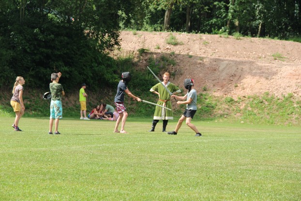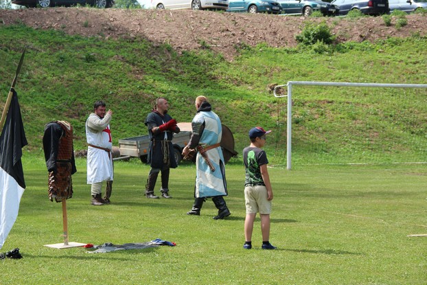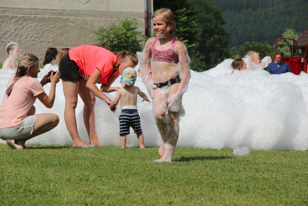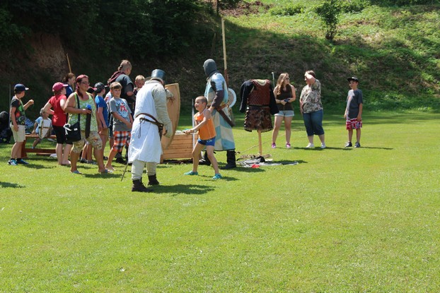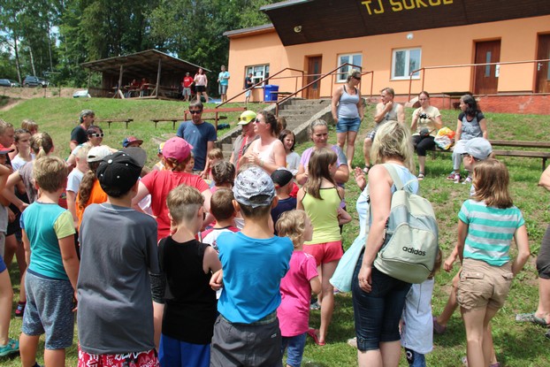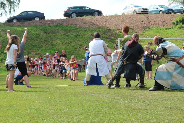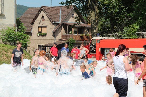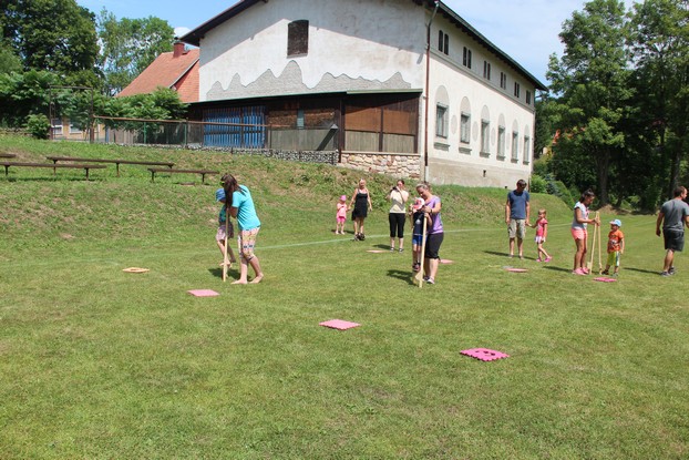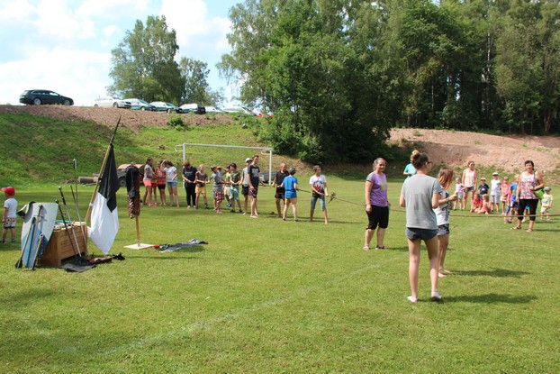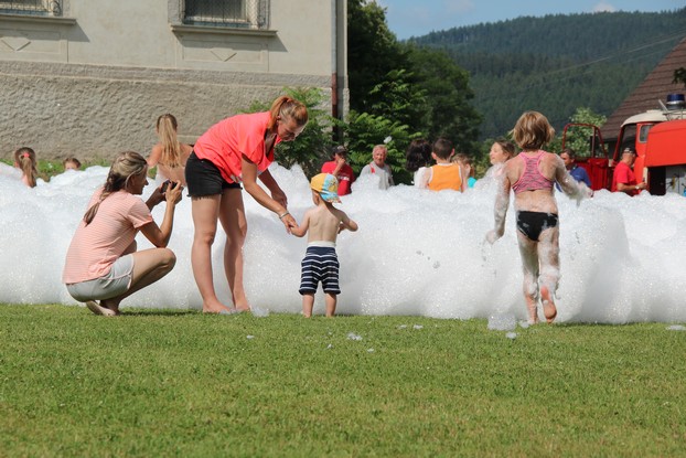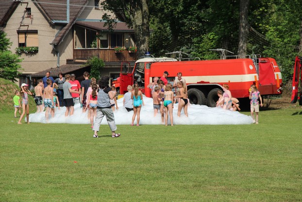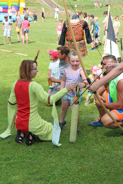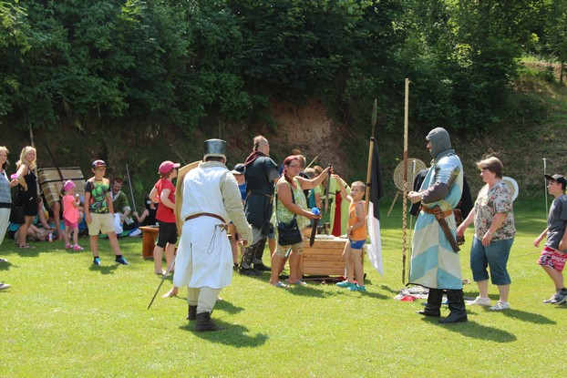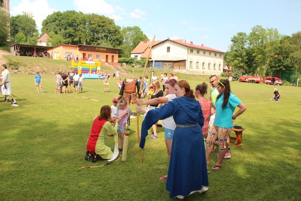 Sešli jsme se v plném počtu. Kulturní komisařky, hasiči z Jetřichova i šermíři SFK Opat Broumov. Všichni byli připraveni plnit dětská přání. A že se jich sešlo přes 70! Rytíři ve zbroji a jejich vnadné dámy byli celé odpoledne v obležení dětí. Děti si mohly vyzkoušet lukostřelbu, šermířské souboje i navléknout si šermířskou zbroj. Stříleli jsme růže, házeli na terč, chodili na chůdách. Pro malé děti nechyběl skákací hrad. Samozřejmou tečkou musela být pěna od hasičů z Jetřichova. Děti se posilnily párkem v rohlíku nebo nanukem. Počasí k němu přímo vybízelo.