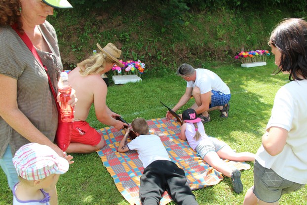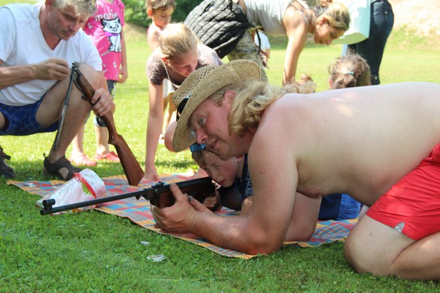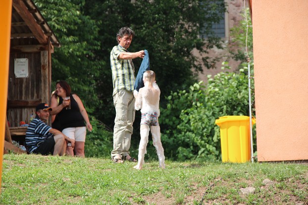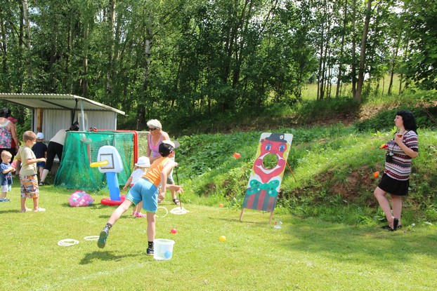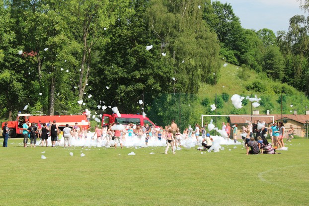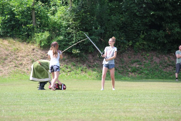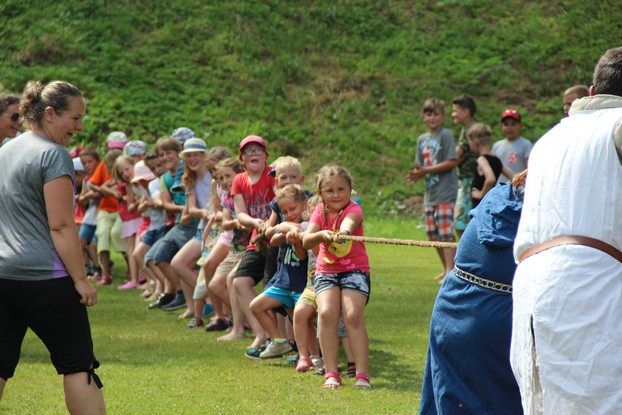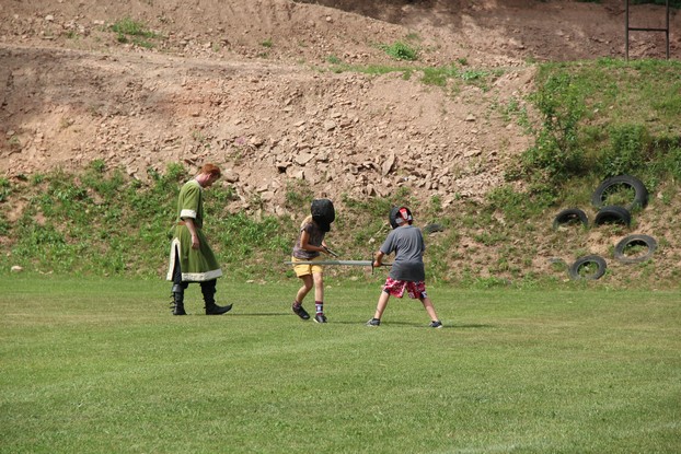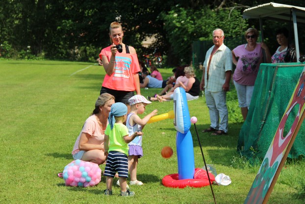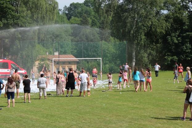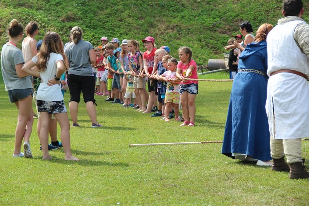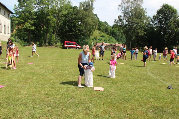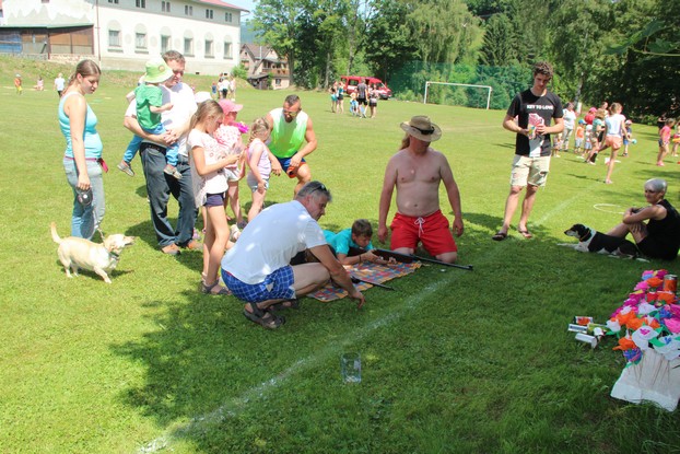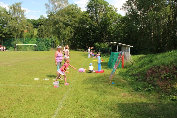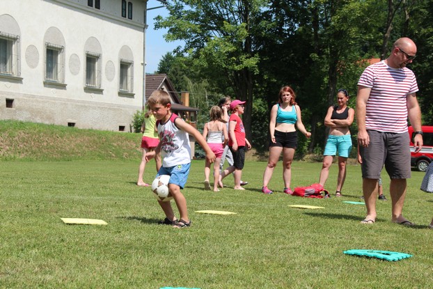 Sešli jsme se v plném počtu. Kulturní komisařky, hasiči z Jetřichova i šermíři SFK Opat Broumov. Všichni byli připraveni plnit dětská přání. A že se jich sešlo přes 70! Rytíři ve zbroji a jejich vnadné dámy byli celé odpoledne v obležení dětí. Děti si mohly vyzkoušet lukostřelbu, šermířské souboje i navléknout si šermířskou zbroj. Stříleli jsme růže, házeli na terč, chodili na chůdách. Pro malé děti nechyběl skákací hrad. Samozřejmou tečkou musela být pěna od hasičů z Jetřichova. Děti se posilnily párkem v rohlíku nebo nanukem. Počasí k němu přímo vybízelo.
