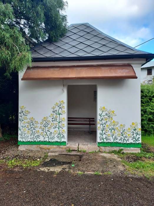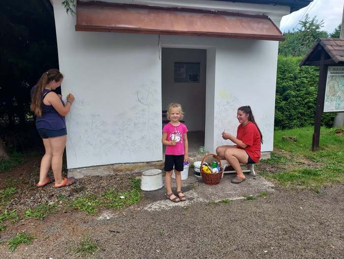 Místní sprejerky Jůlinka a Jolanka nám "posprejovaly" naši zastávku na křižovatce. Na pomoc si ještě vzaly babičku. Ale že se jim to povedlo :-)