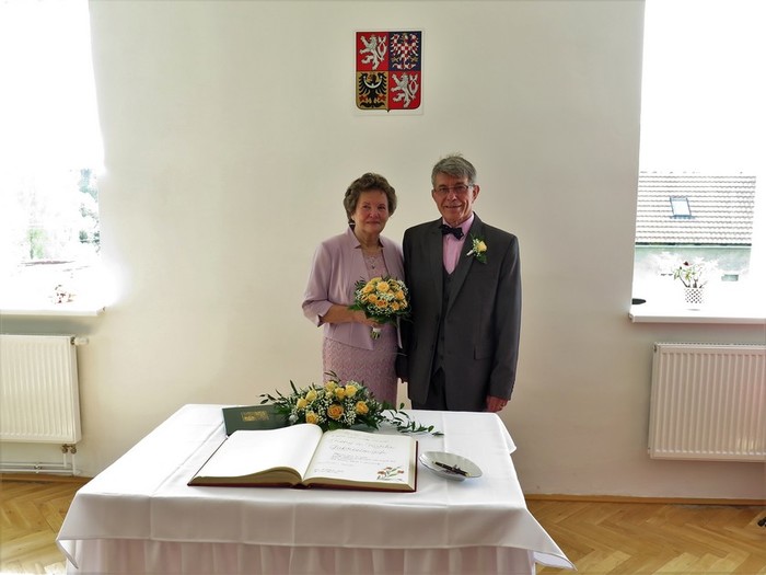 Poznámka: Touto cestou chceme poděkovat paní starostce Janě Králové a paní Renatě Stečínské i všem přátelům a známým za přání a krásný den, který nám připravili k oslavě padesáti let společného života. Irena a Karel